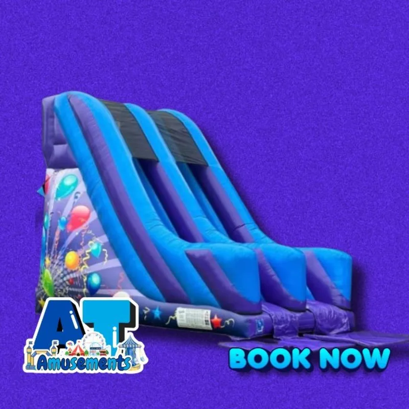 Hiring the purple and blue steeper velcro slide is quick and easy: